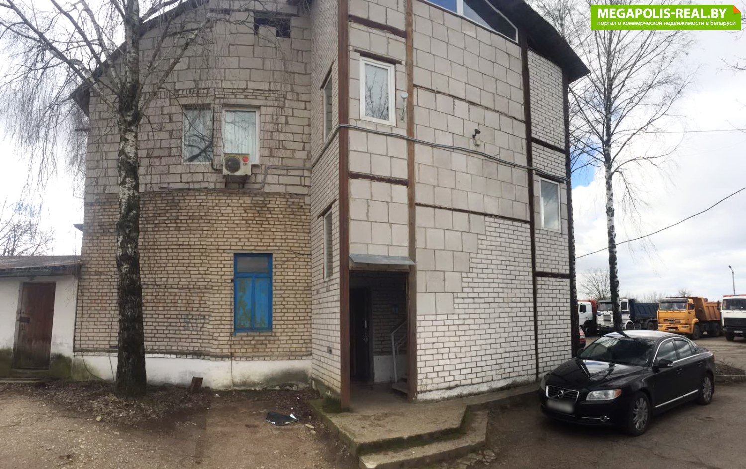 На территории располагаются: 2-х этажное офисное здание, ремонтные боксы для грузовых автомобилей (3 ямы (кран-балка над ямой), ворота 5,5 м), гараж, склад (99,5 кв.м., металлические ворота, бетонный пол), площадка для открытого хранения.